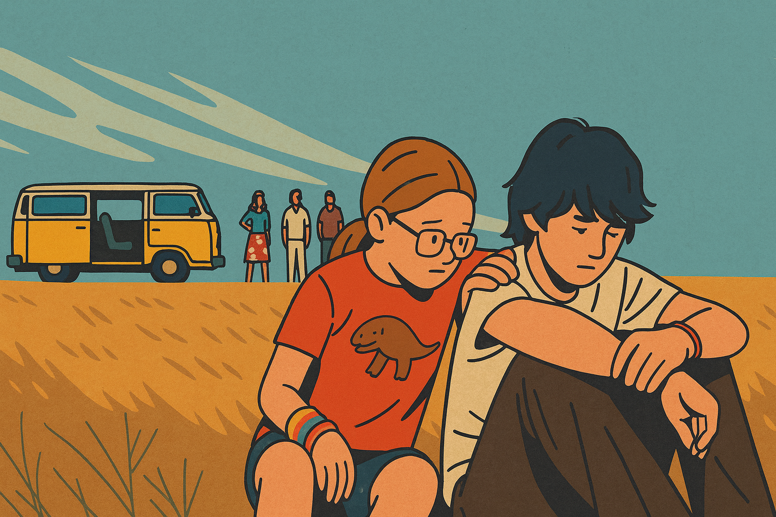 - 演出:黄色×夕光×広角の“抜け”で、居心地の悪さがじんわり連帯に変わる過程を描いています。